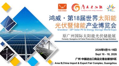 2026世界太阳能光伏暨储能产业博览会 (第18届广州国际光伏储能展) 时间:2026年9月16-18日 地点:广州.中国进出口商品交易会展馆