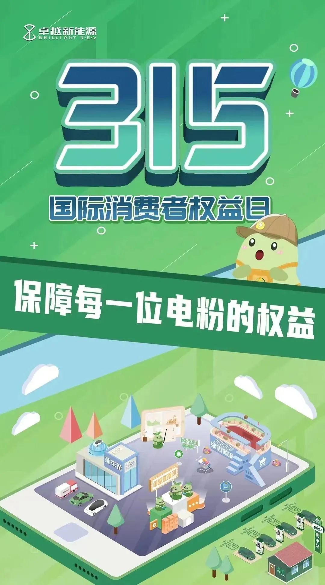 “国际消费者权益日”(Word Consumer Rights Day)是每年的3月15日,由国际消费者联盟组织于1983年确定。目的在于扩大消费者权益保护的宣传,使之在世界得到重视,以促进各国和地区消费者组织之间的合作与交往。卓越新能源一直致力于保障每一位电粉的权益,不断提升用户的消费体验,让电粉们在充电时更安心、更舒心。