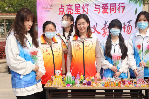 “这个是小熊”“这个是锦鲤”......在武汉商贸职业学院行政楼广场,志愿者们拿着精致的串珠手工艺品热心地向前来的师生介绍,现场人气火爆。